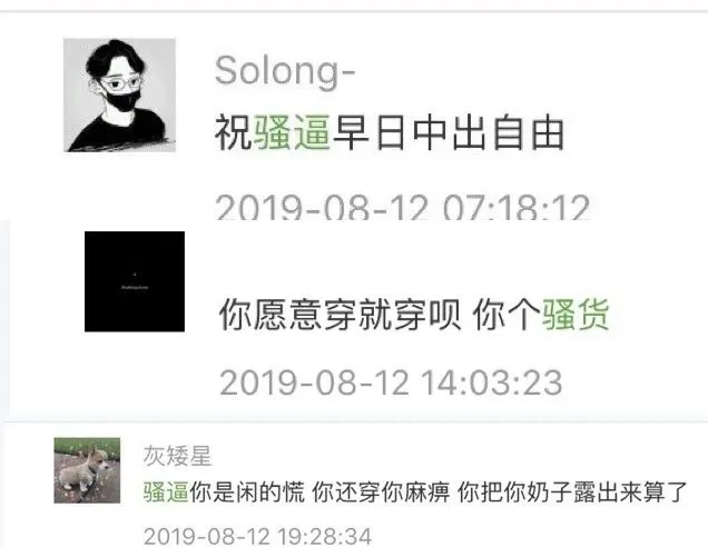 我只想告诉大家,这样的侮辱性留言后台大概有上万条,而且有不少女性骂女性的。