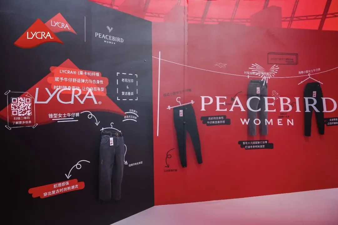 PEACEBIRD则为大家展示了莱卡®️在牛仔中的技术,出色的拉伸性和回复性让每一款牛仔裤都具有极高的品质和舒适性,不仅好搭时髦,也做到了好穿。