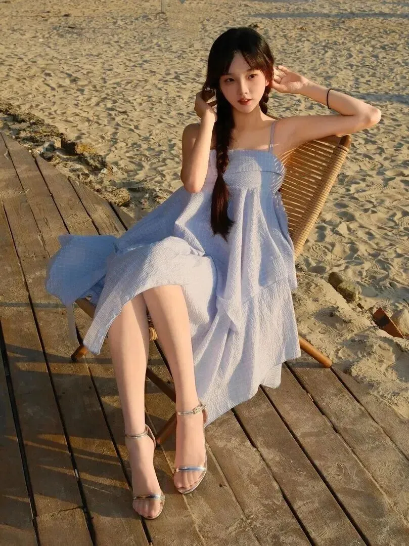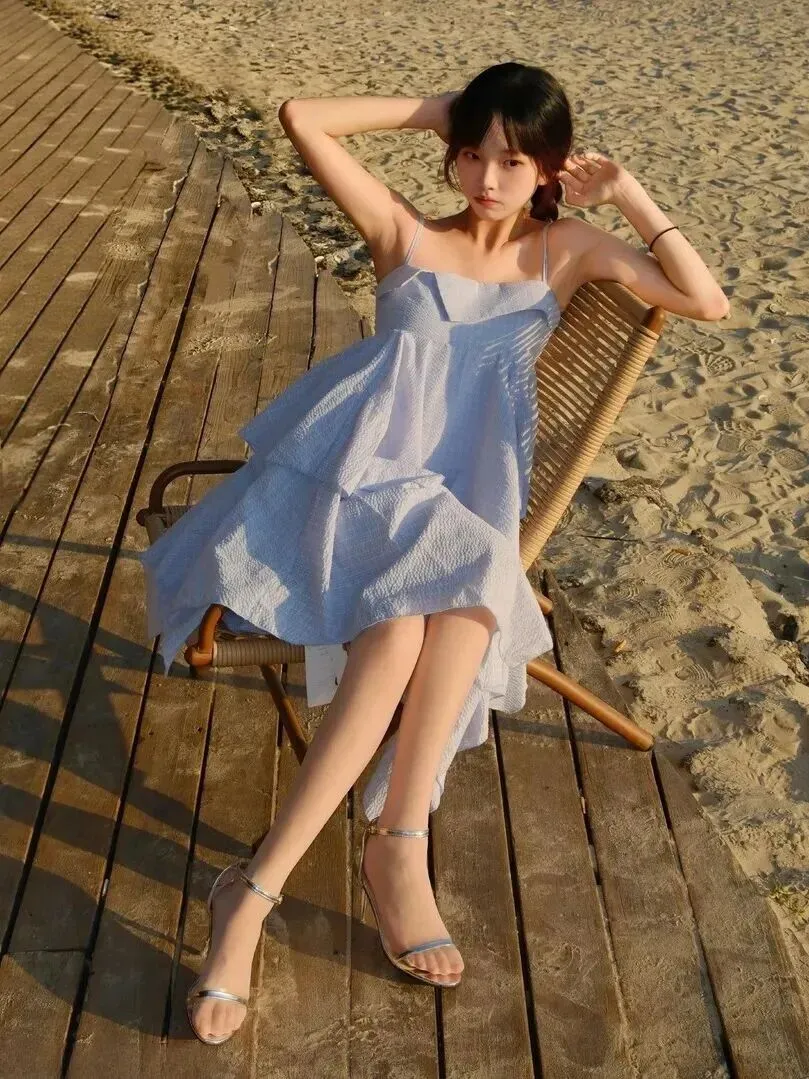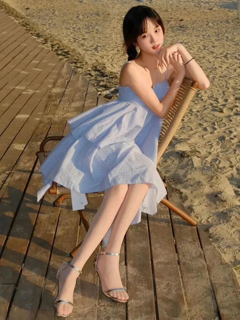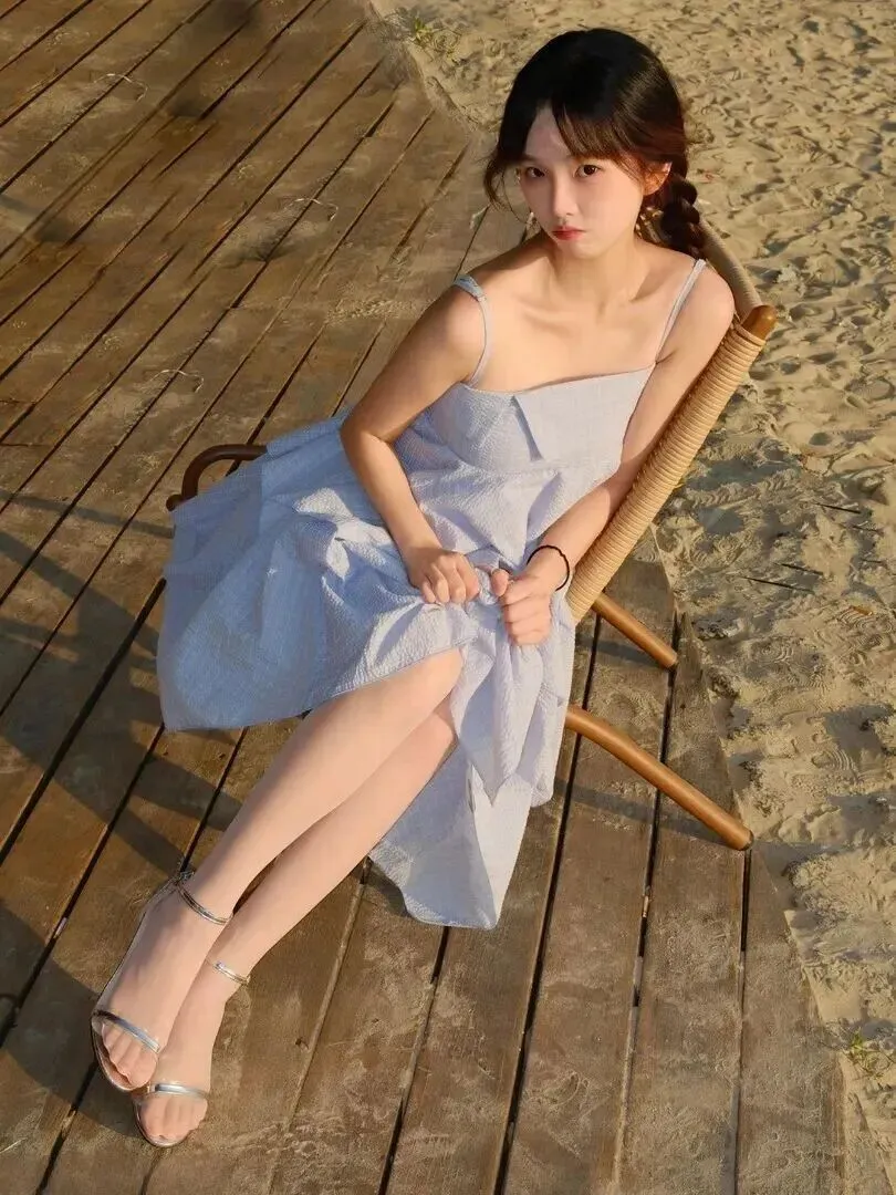 夏日.海滩穿搭.终极.答案!这件.浅蓝吊带裙.让你.美翻整个假.期!