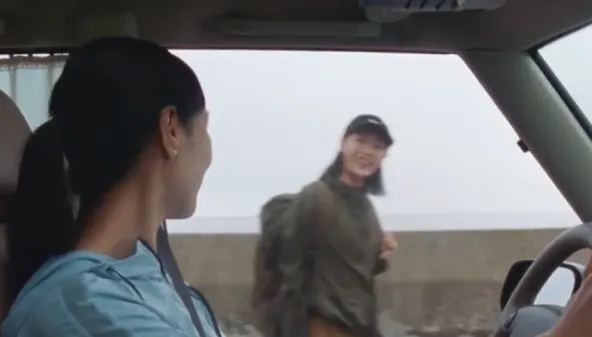 扎着马尾的飒爽姐姐独自一人开车旅行,路遇需要搭车的女孩,毫不吝啬地伸出援手;