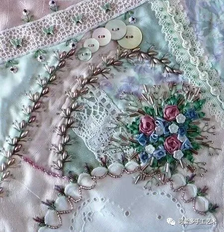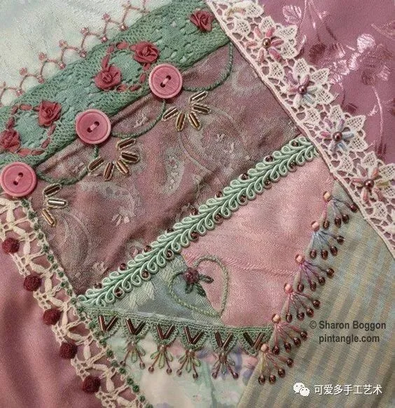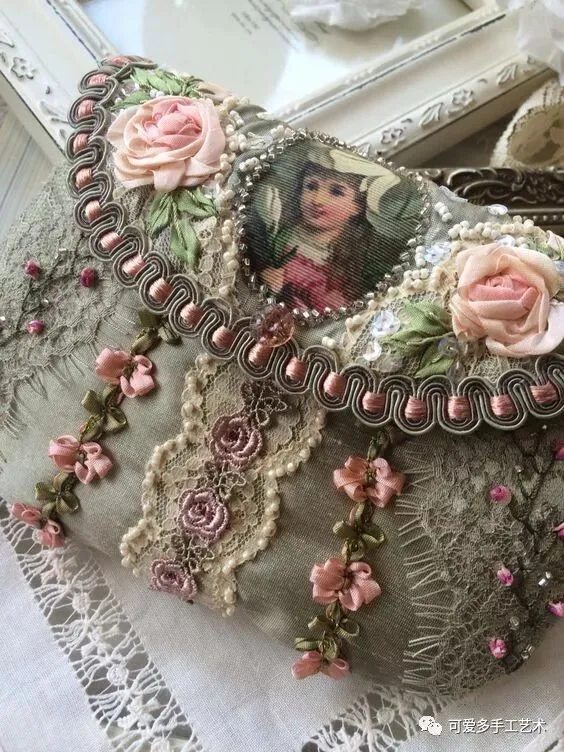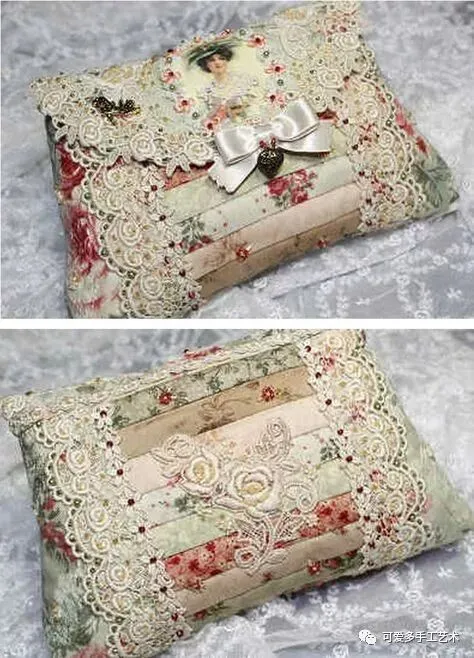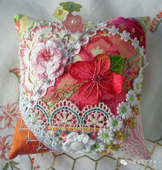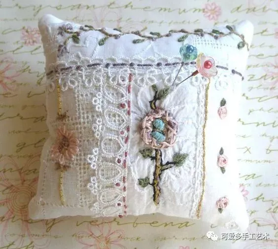 碎布乱拼乱缝,加刺绣与蕾丝装饰,除了做成小小的针插,还能做成一个小小戒枕,大一点做成抱枕。真是太实用了!