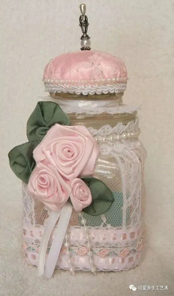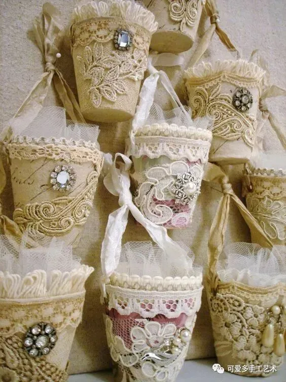 家里吃完零食或一些调料留下来很多玻璃瓶或铁罐纸盒,此时蕾丝就是一件很华丽的外套了。