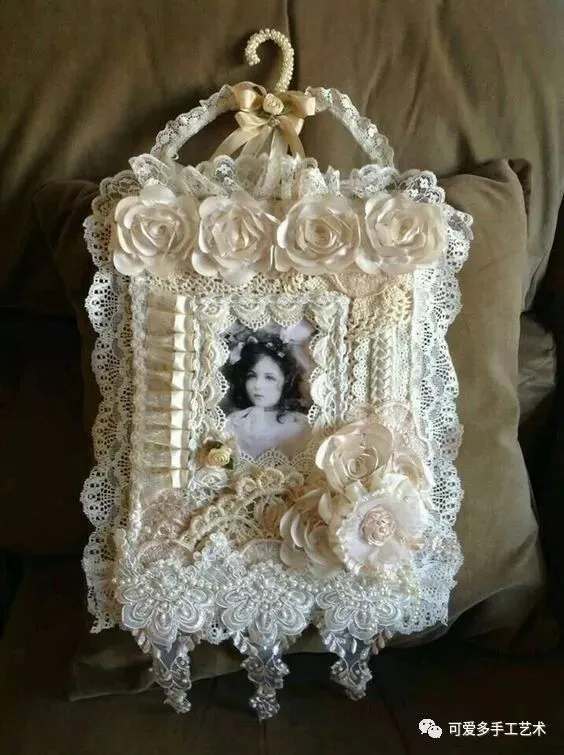 相框都不用买,用纸板加蕾丝就可以自制一个,而老旧的一些相框也能好好翻新一下了。挂在墙上或放在桌上都可以哦。