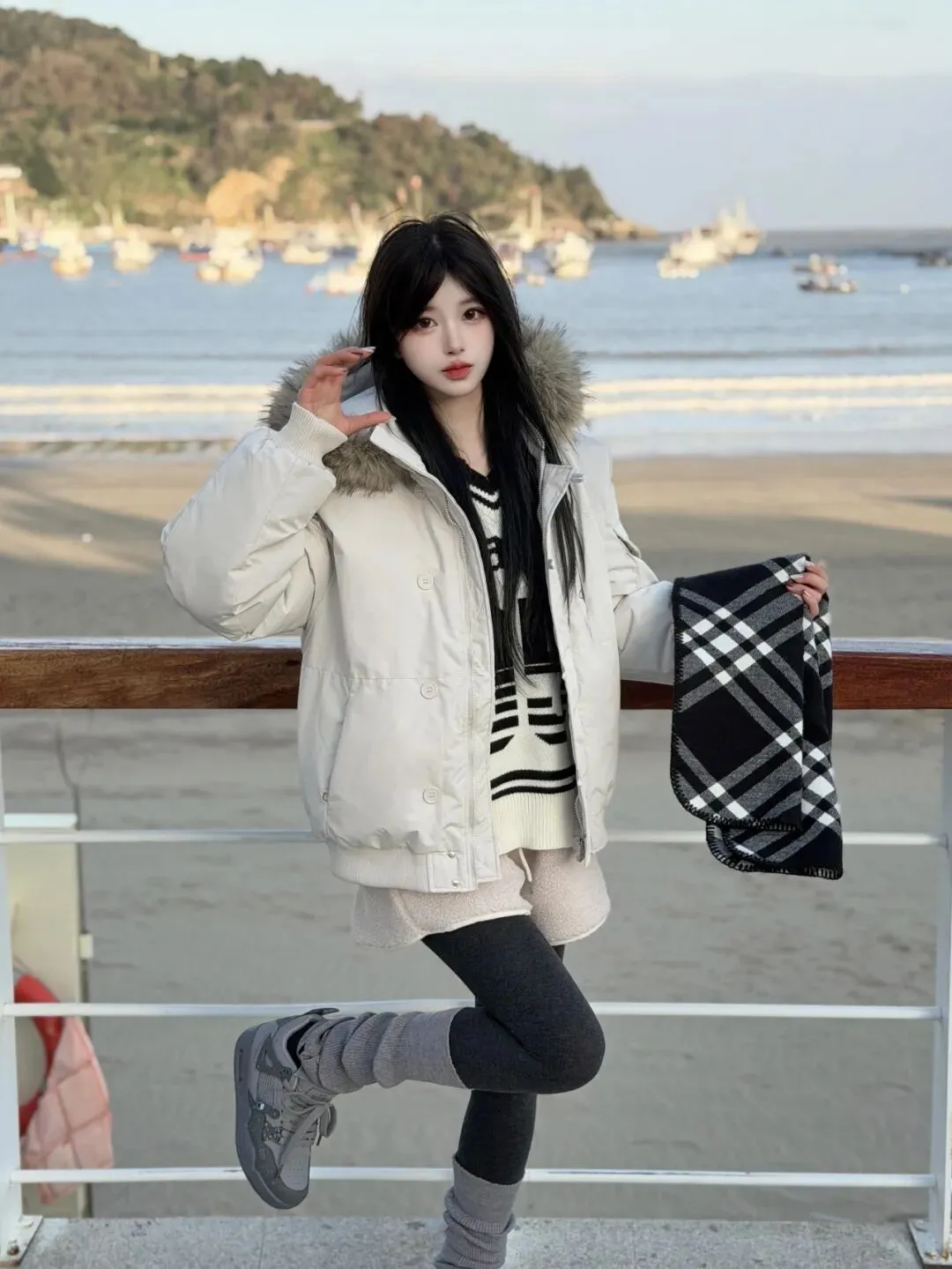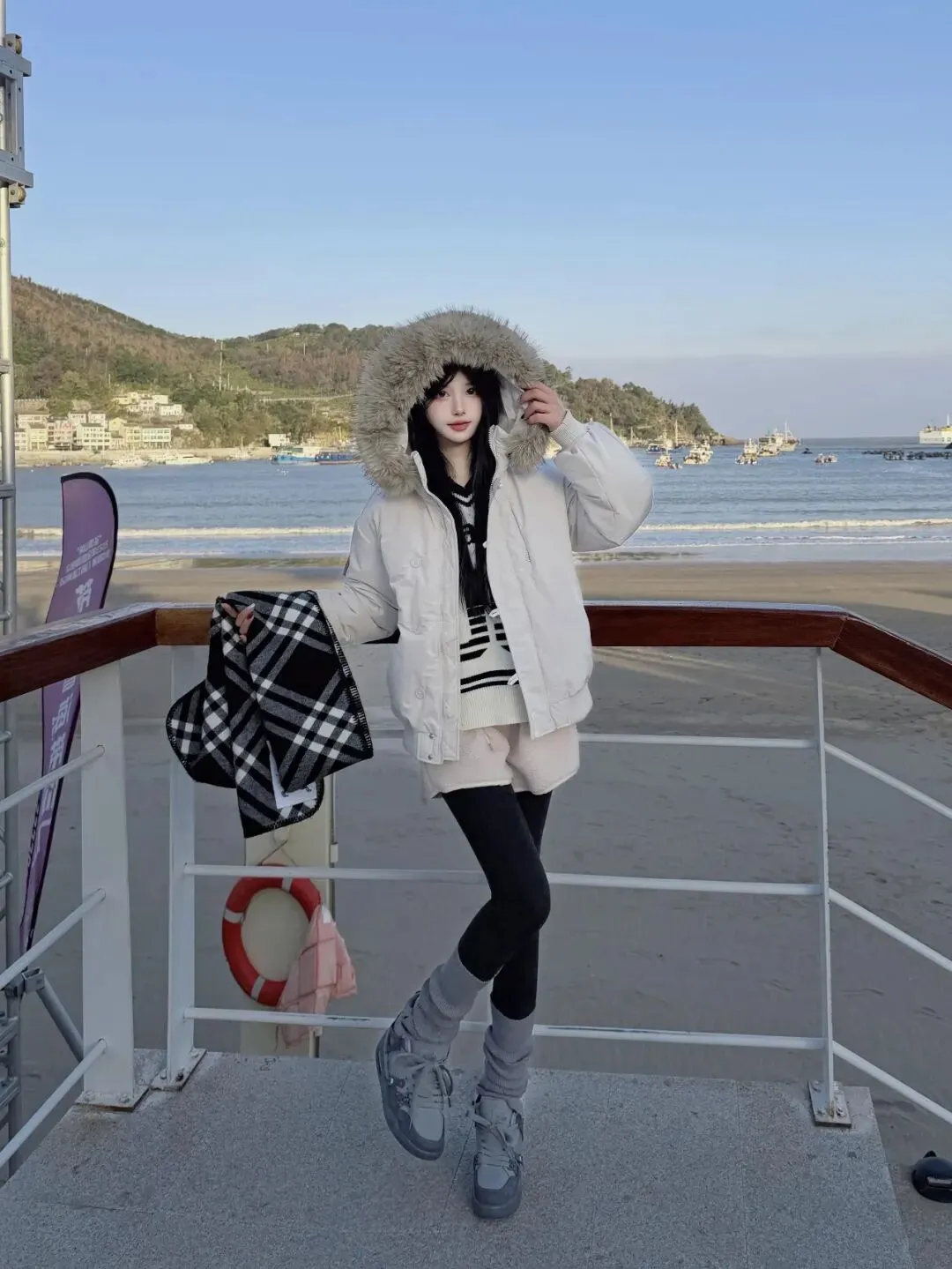 冬日海边穿搭封神!米白棉服+松弛感细节,保暖又出片谁顶得住啊