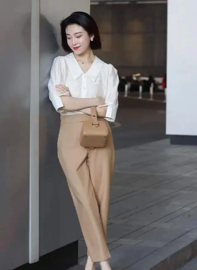 举个例子,修身西装配高跟鞋,确实能让你看起来很职业,但如果通勤地铁挤一挤,早高峰热到冒汗,整个人就会狼狈得不行。倒不如选一件轻松有垂感的直筒版型,搭配平底鞋或小方跟,既舒适,又不失利落感。