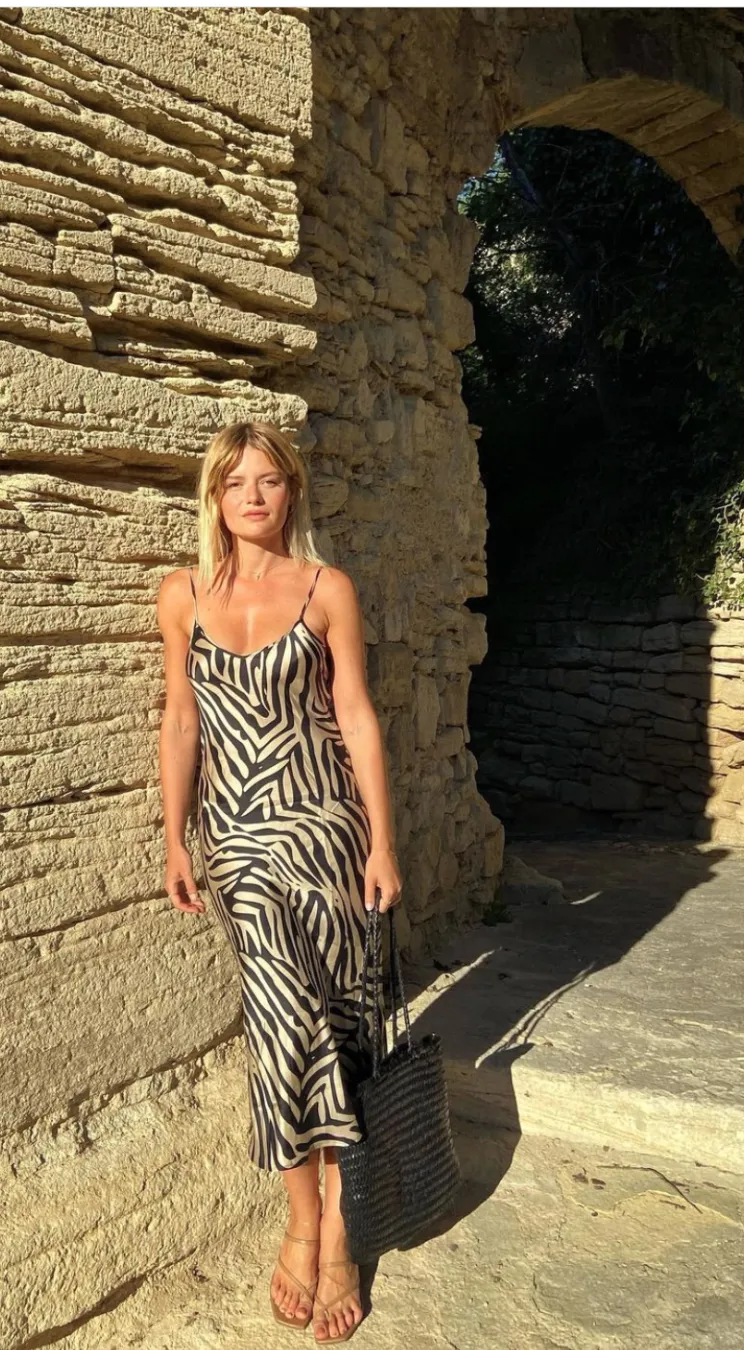 如果觉得纯色太过平平无奇,那将自带狂野张力的性感动物纹元素注入短款slip dress中也能放大个性腔调。脚踩黑色长靴、墨镜一戴,谁都不爱的酷女孩儿,即刻出道。