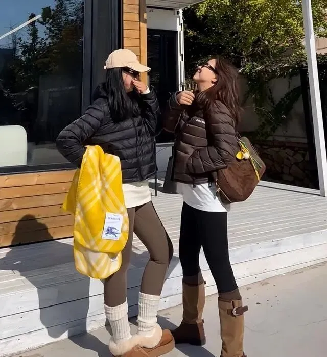 今年冬天韩女带火了一组搭配 , 排骨羽绒服+瑜伽裤 , 我一开始也觉得奇怪 , 这俩能搭一块儿吗 , 结果上身试了试 , 真香。