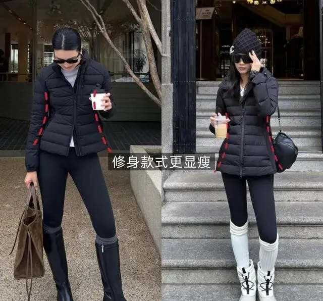 传统羽绒服那种大面包块 , 穿上去整个人膨胀一圈 , 排骨款不一样 , 线条利落 , 贴合身形 , 视觉上直接瘦五斤。