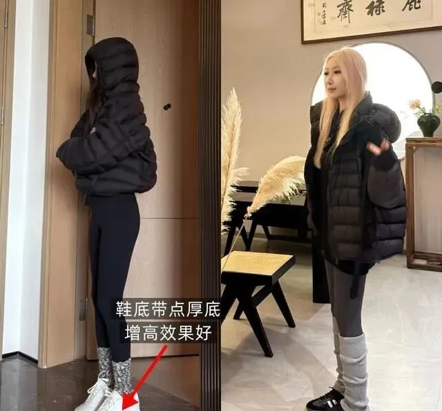 羽绒服别买太长的 , 刚好盖住胯就行 , 过臀的款式压个子 , 瑜伽裤选高腰款 , 裤头高于肚脐 , 腿长全靠这条线。