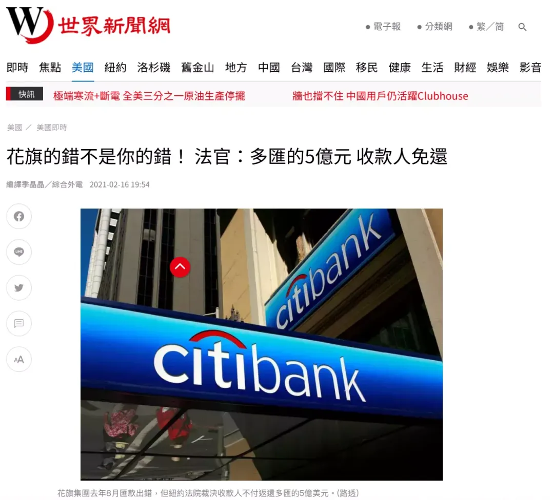 本来我都忘了破产的事,继续买买他家各种白菜,前阵子它又出现在财经新闻板块,有点好笑,大意是负责露华浓贷款业务的美国花旗银行不小心给它家放款人多汇了5.04亿美元,最近法院裁定要不回来了(变相帮露华浓还了债