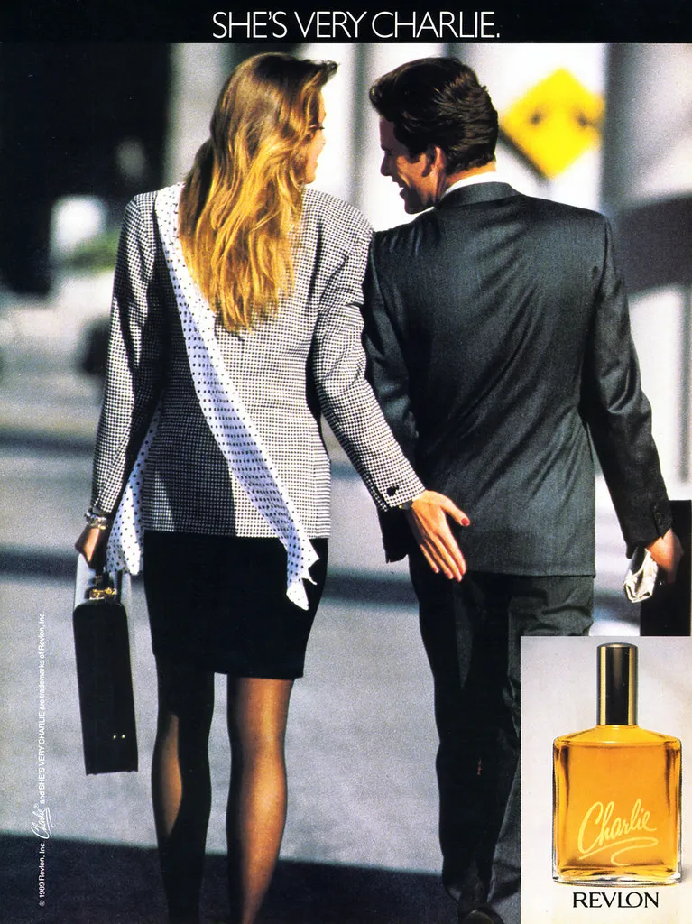 露华浓给Charlie的定位是「精致但不贵」,调香说不上多高级,但带着骚气动物感的绿叶花香,在当时挺能表达独立女性在职场和夜场都能纵情厮杀的性感。