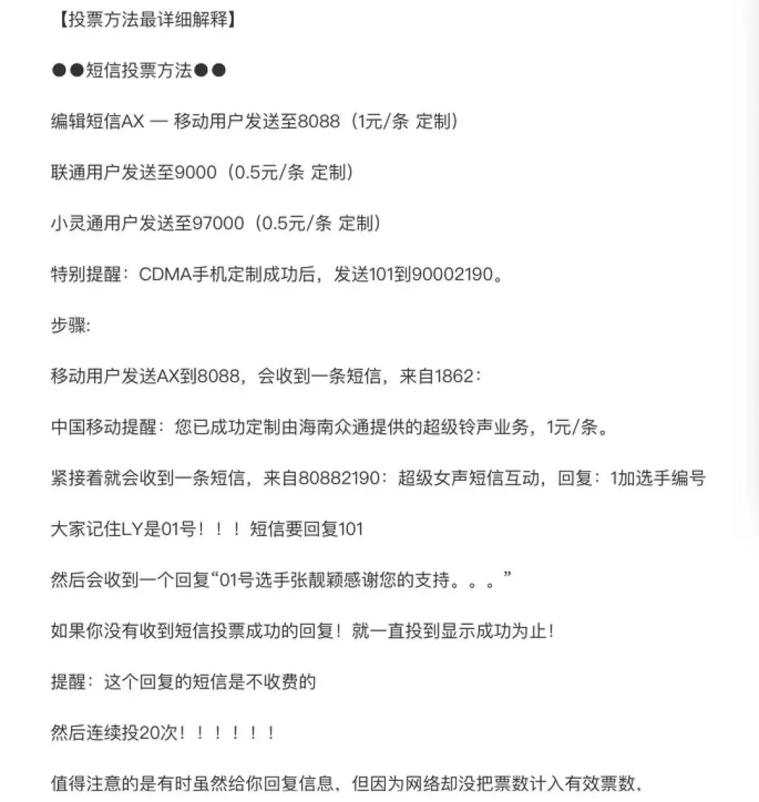 她们投票全靠一台小灵通,用真金白银充的话费,为她疯,为她狂,为她咣咣撞大墙。