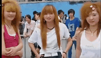 比如这位留着顺直长发,穿着白色紧身短T的圆脸女孩,丝毫没考虑烫卷掩盖一下贴头皮的发量。