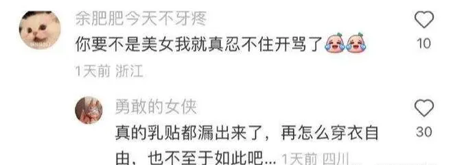 不是“穿衣自由的前提是穿衣得体”,就是“什么穿衣自由不过是打擦边球”,最后直接给你盖章定戳——“你就是在媚男吧”。