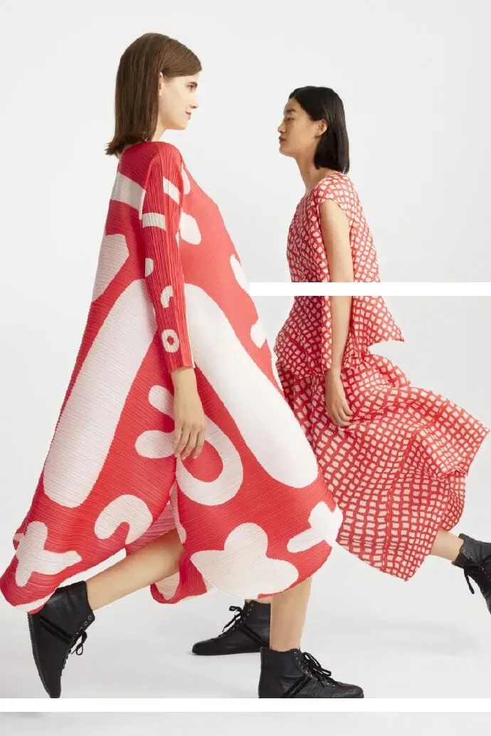 不得不承认三宅一生是“折叠怪人”,标志性的褶皱、垂感、弹性、柔软感,让东方审美也变得灵动又有力量。用一块布,围绕在人的身体上,感受服装相连带来的愉悦感,这是三宅一生品牌的初衷与展望。