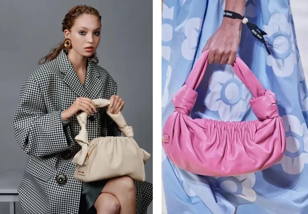 今年早春被各时尚博主吹爆的皮革包,形状和云朵包十分相似,没有想到...始祖居然是MiuMiu!早在去年巴黎耶纳宫秀场上,模特便把它带到大众视野里。
