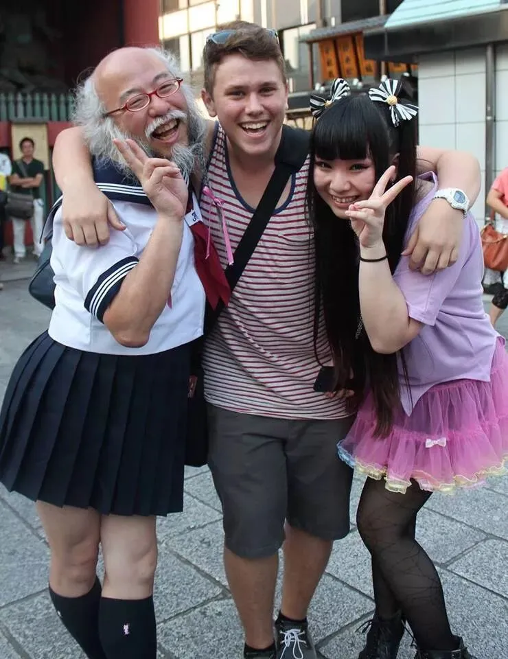 一个总是穿着水手服出现在东京街头的大叔,白色的胡子系上蝴蝶结,穿着日本女生的校服,以及齐膝的袜子和鞋子,相信就算你不在日本,也有见过这位大叔。