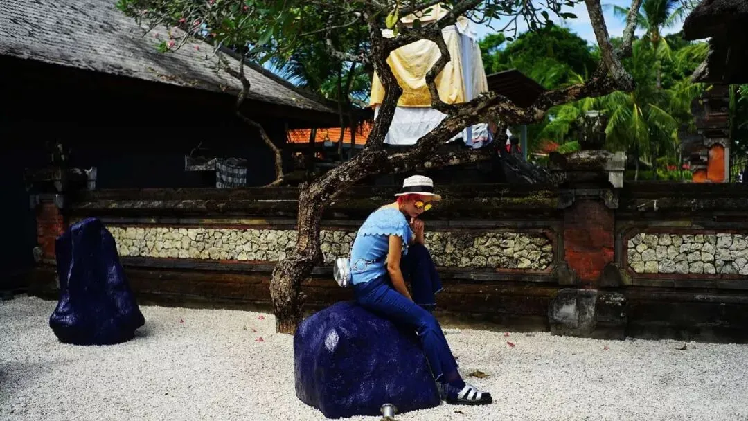 因为根本不想走出clubmed酒店,所以我也没有去乌布,只是在每次经过酒店的法餐厅的时候,感受餐厅门口铺满白色石子的道路边上,这一块蓝色石头的强大诱惑力。