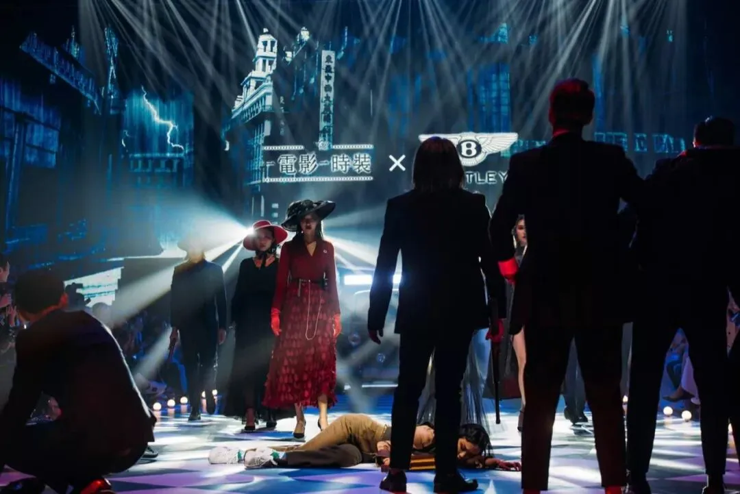 跟着复古宾利轿车的马达轰鸣,枪战谍战大剧《王牌》的桥段在秀场上演,模特和名伶化身敌我两方势力,在繁华讲究的大上海,玩起伪装与真情流露的危险游戏。