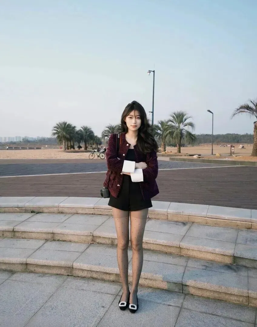 .那天在海.边看到她的.时候.,差.点以为是谁.家的电.影镜头没.关。10度.的天气.里,她穿.着酒红.色外套和.黑色短.裤,迎面吹.来的海风把.衣角.轻轻扬起,.整个人优雅.得不像.在过.冬天。