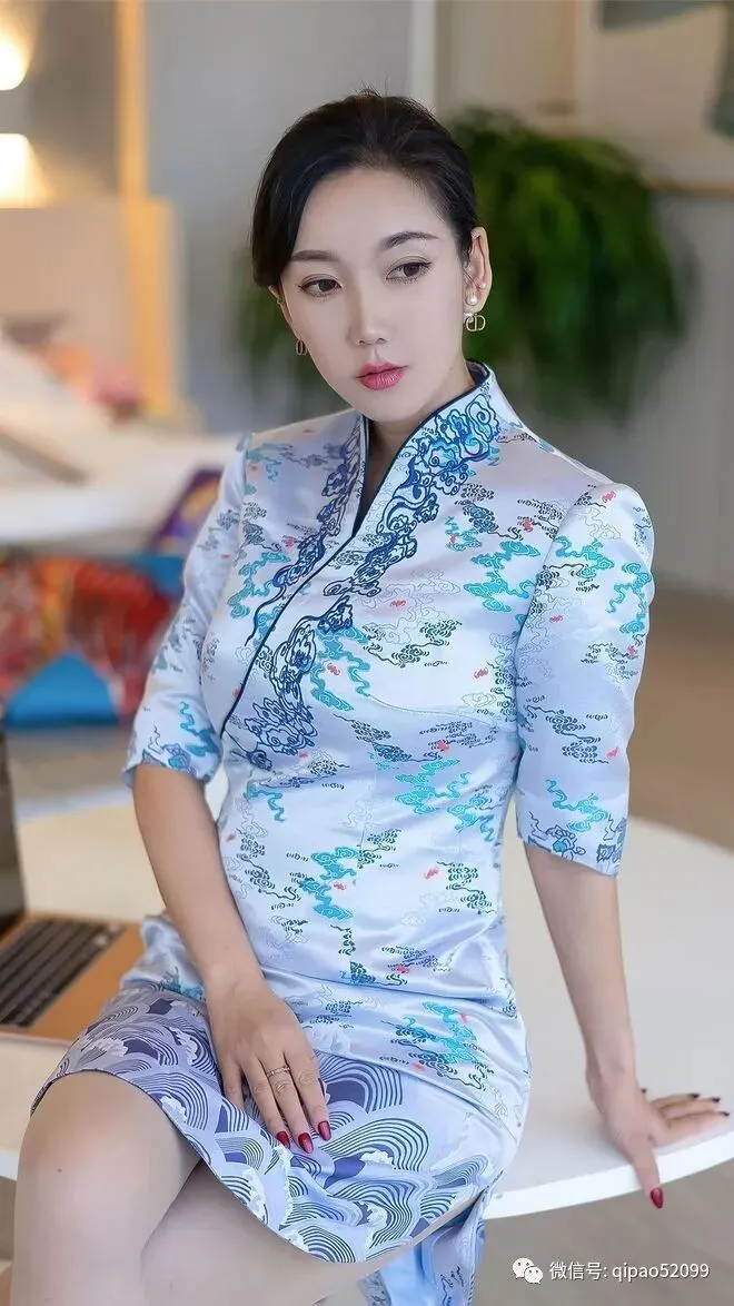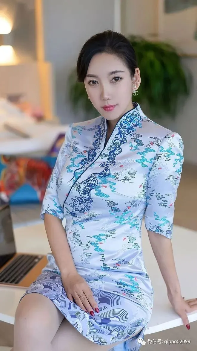 五分中袖相比于短袖更加成熟稳重,而长袖设计不仅过于保守,而且作为旗袍制服不利于工作。长度不长不短刚刚好的感觉,过短吧有种风尘感,过长吧又太正式,这样的长度显得更加随和自然。