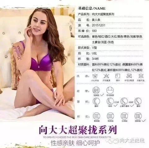 内衣是女人四季的贴身闺蜜,没有换季一说,不会过期向大大内衣是无钢圈文胸的新兴品牌,是传统内衣的一次革命,是在微商经济下快速成长的金矿。向大大微商第一内衣品牌央视合作伙伴!