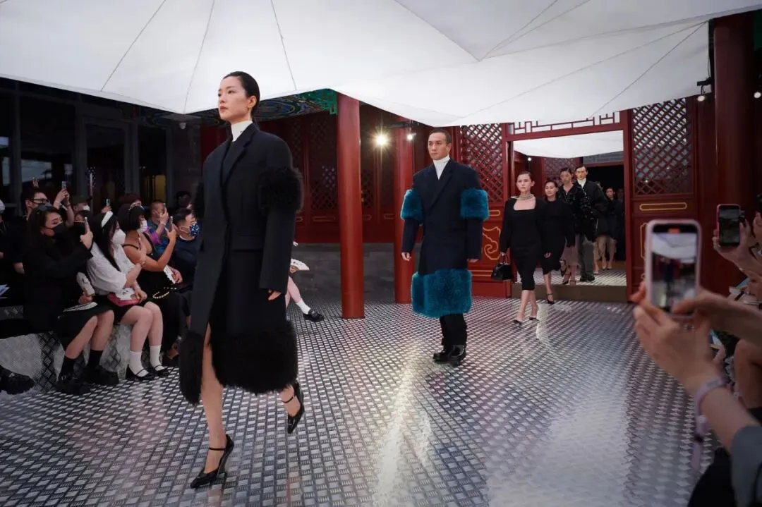 8 月 5 日晚间,Prada 2022 秋冬男装及女装时装秀在北京郡王府拉开帷幕。