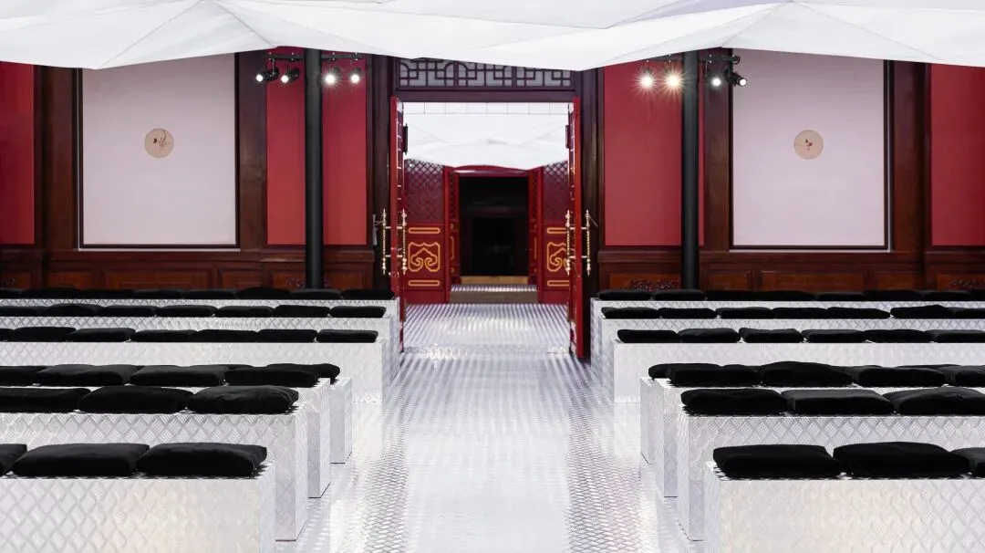 而本次时装秀选在郡王府的银安殿举办,秀场设计则由 Prada 的长期合作伙伴、全球著名建筑师事务所 OMA 的研究机构 AMO 一手打造。