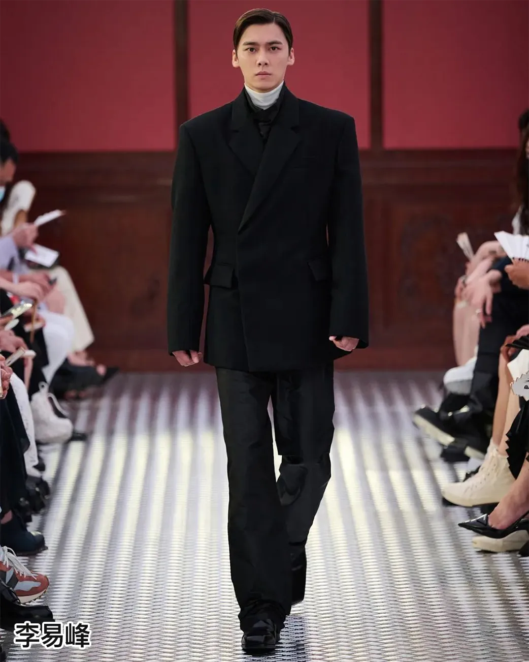 先说走秀嘉宾,春夏、李易峰、白宇帆、郭柯宇、黄觉、黄米依、惠英红、廖凡、热依扎 9 位不同年龄段、不同风格的中国演员,分别身着 Prada 时装走上 T 台。