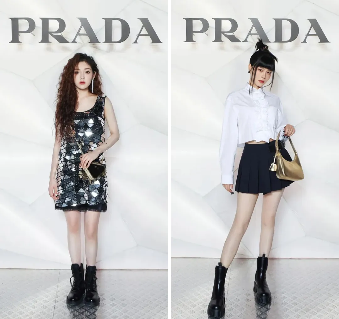 希林娜依·高、朱婧汐分别身着 Prada 时装出席,很想喊一声美女贴贴!