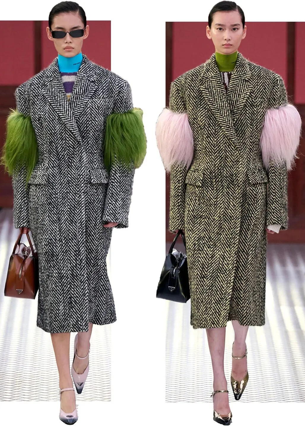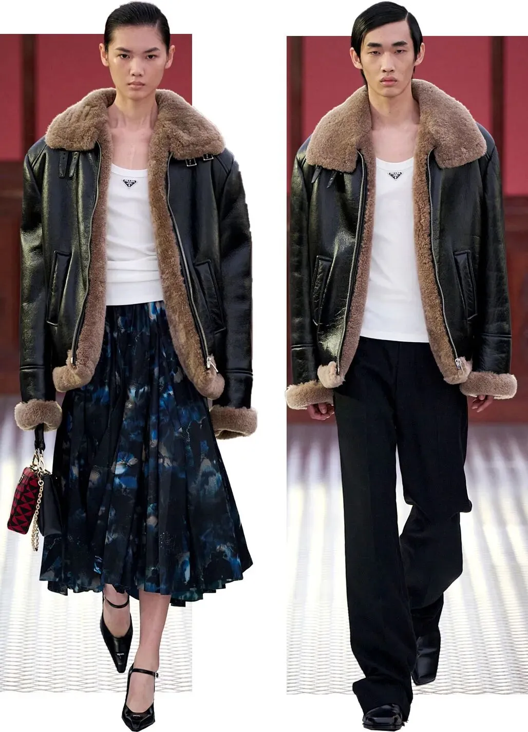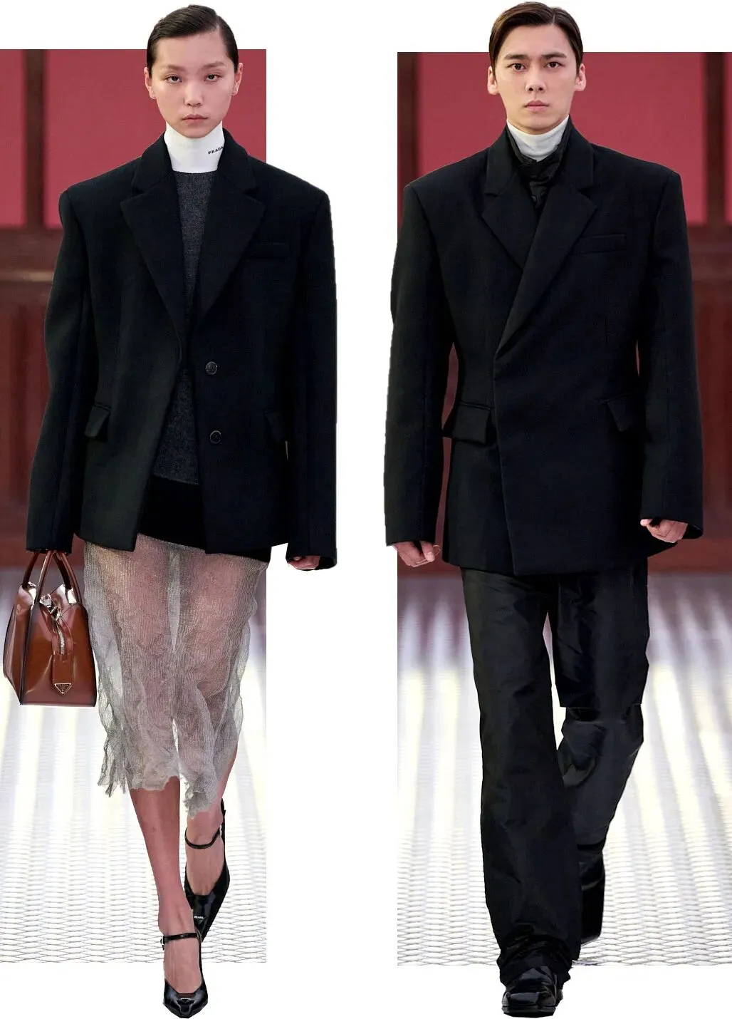 这种鲜明的反差感,却恰巧迎合了 Prada 的秀场语言:即使跨越时空,拥有不同文化,也能通过时装,感受到一种别样的交融。