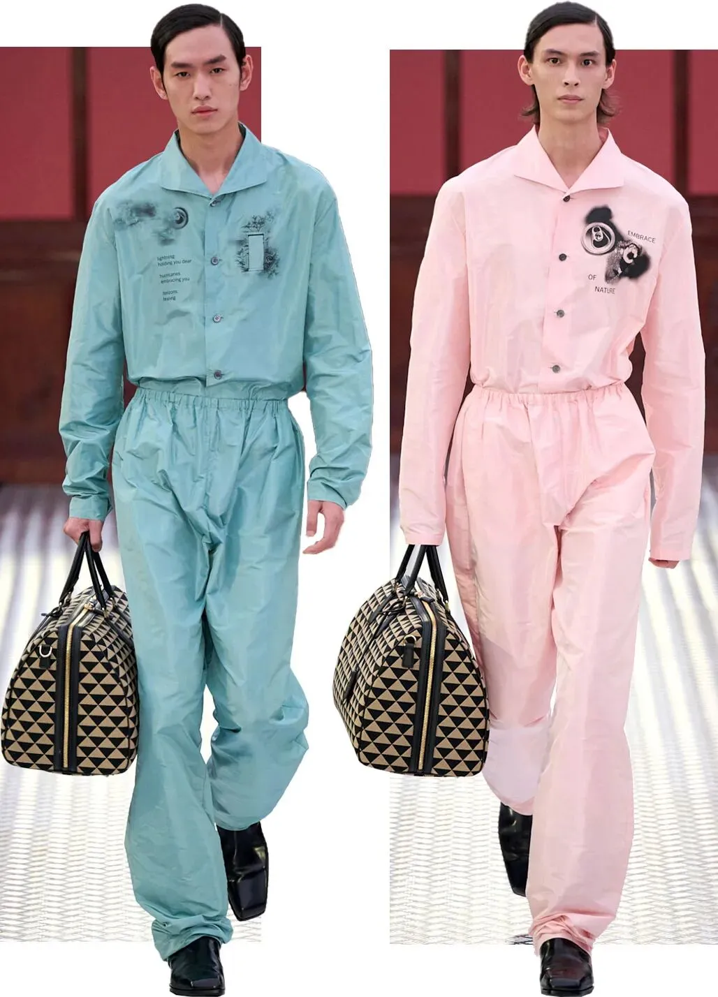本系列的男装发布,也是对 Prada 2012 年秋冬男装秀的一种致敬。