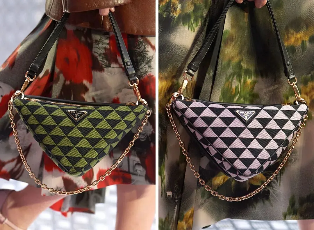 这款包袋更像是 Symbole 手袋上简约廓形版的经典三角徽标图案,再加上 Triangle 手袋的经典三角形轮廓一种结合,无论是拎在手上还是背在肩上,都别具风味。▼