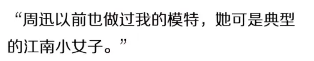 潘鸿海先生称当时画周迅时她还是一个很不起眼的女孩,但是当他们让周迅拿着茶壶倒水,水溅开后她优雅地拍了一下裤脚,表现得十分淡定,当时潘先生就想,这个小女孩不得了,以后肯定会红的。