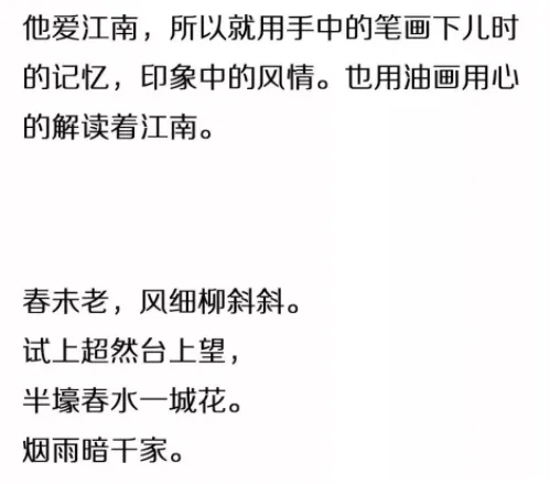 “对我而言,江南是我内心深处排遣不去的情绪,生于斯,长于斯,江南是梦,天人合一。”