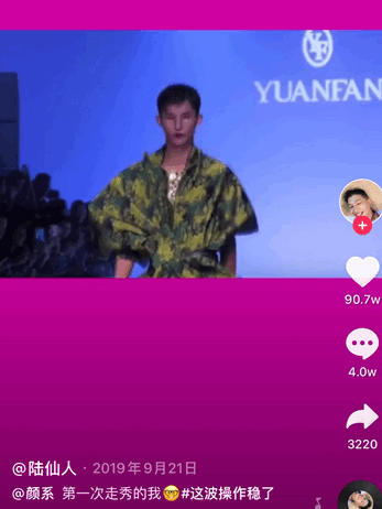 他堂弟用手机给他拍的走秀视频,一开始上到抖音,没人看。连续拍了10个小视频,点播次数只有2个。