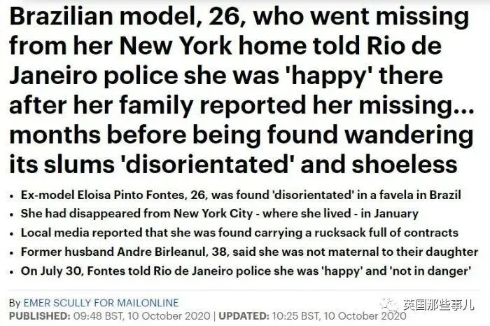 据媒体报道,Eloisa去年年中就在纽约神秘失踪过,