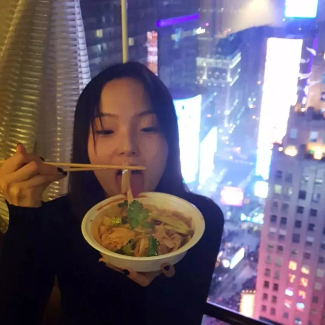 吃凉皮的雎晓雯(左)