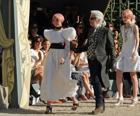 除此之外,12年秋冬应接不暇地接到了Kenzo和Lane Crawford的广告。13年早春度假秀场(12年举办)谢幕的时候还被老佛爷拉手手,知名度进一步上涨。
