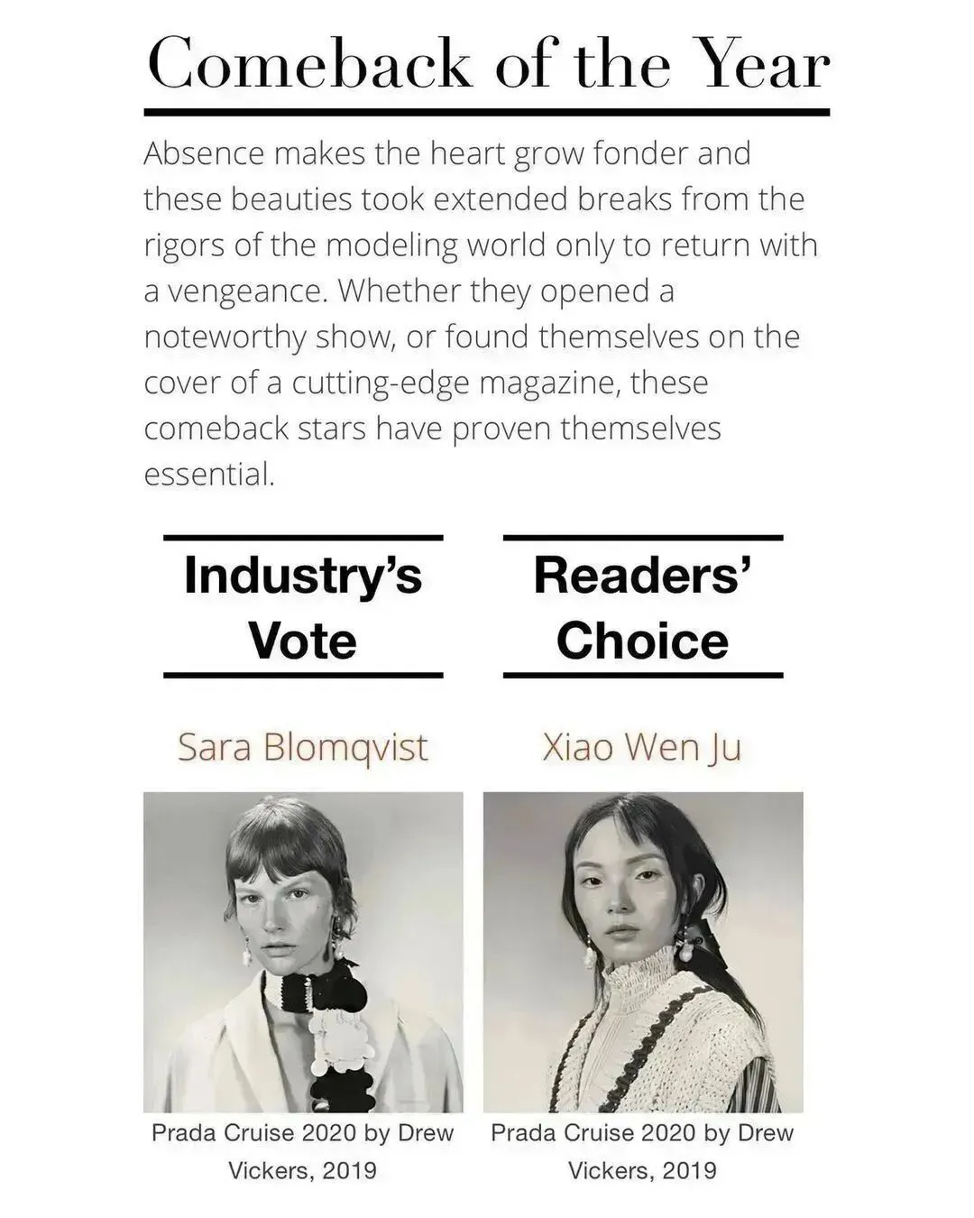 16年雎晓雯凭借欧莱雅的合约进入MDC Industry Icon和Money榜单,成为第三位进入Icon榜单的亚裔超模。入行之初她就表示过想成为icon,理想成真,恭喜恭喜。成为icon后的雎晓雯终于有了第一封VC OG封,AC贯会锦上添花。