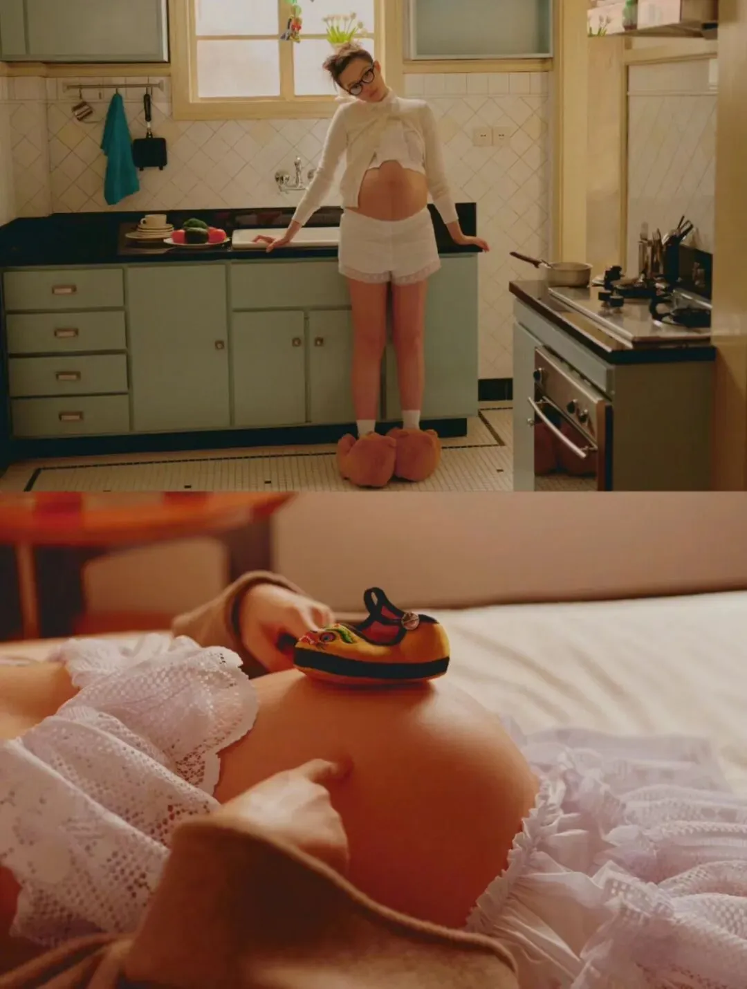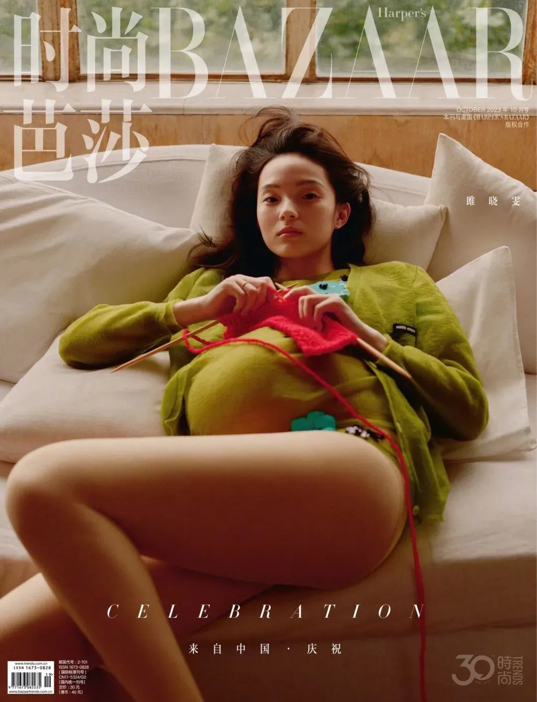 BAZAAR为了纪念,策划了十月刊,雎晓雯挺着孕肚织毛衣、看书、整理毛绒玩具......像每一个新手妈妈那样怀着小心翼翼的期待,温柔稳重又有着独一份的灵气。