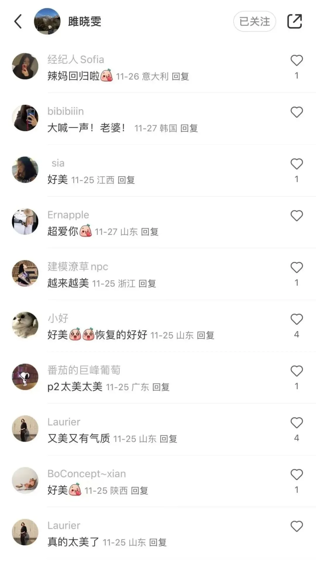 在生活上里雎晓雯也是鲜活蓬勃的,爱吃爱运动、思维跳跃、偶尔嘴瓢、吸猫撸狗,喜欢记录分享生活中的琐事、毫不吝惜地展现自己的优点、喜欢分享工作上取得的成就……一方面有着年轻女孩共有的特征,另一方面又有着成长过后的思考。