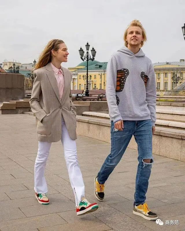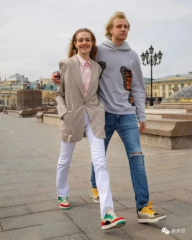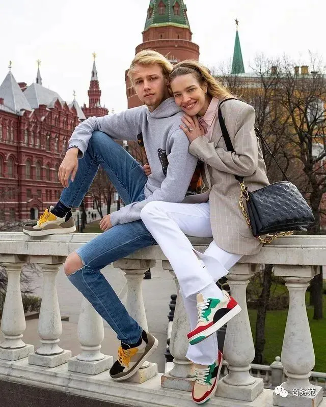 这个品牌的鞋子很有辨识度,Natalia也是晒了又晒,全力支持大儿子的事业。