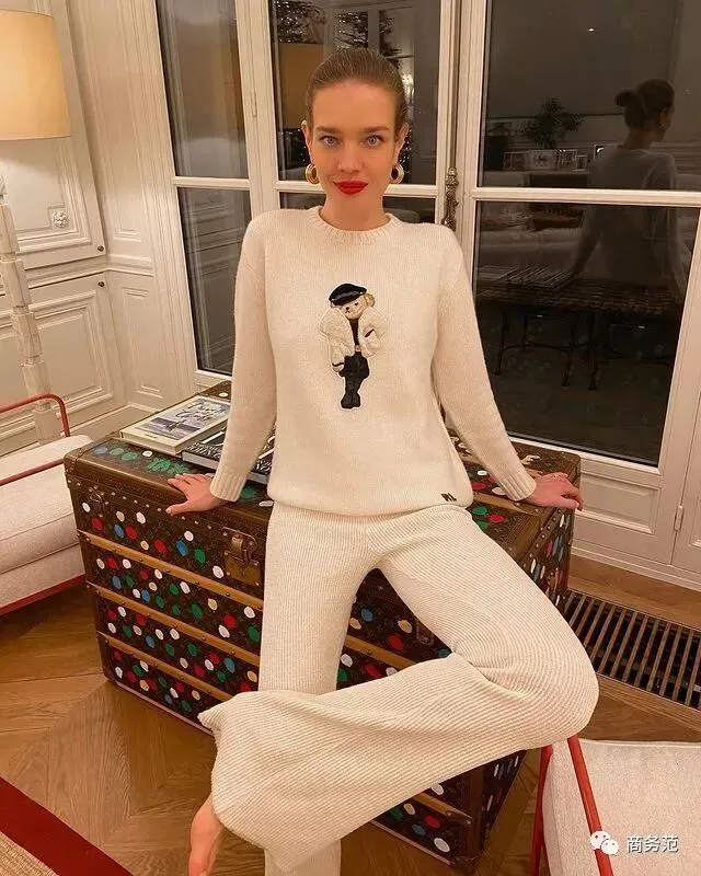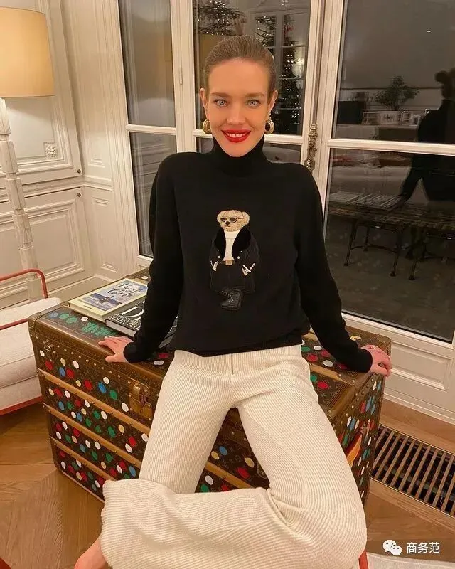 虽说成为了LV太子妃,但 Natalia也并没有非LVMH品牌不穿,像去年冬天,她就上身了Ralph Lauren的泰迪熊毛衣,很有可可爱爱的少女感。