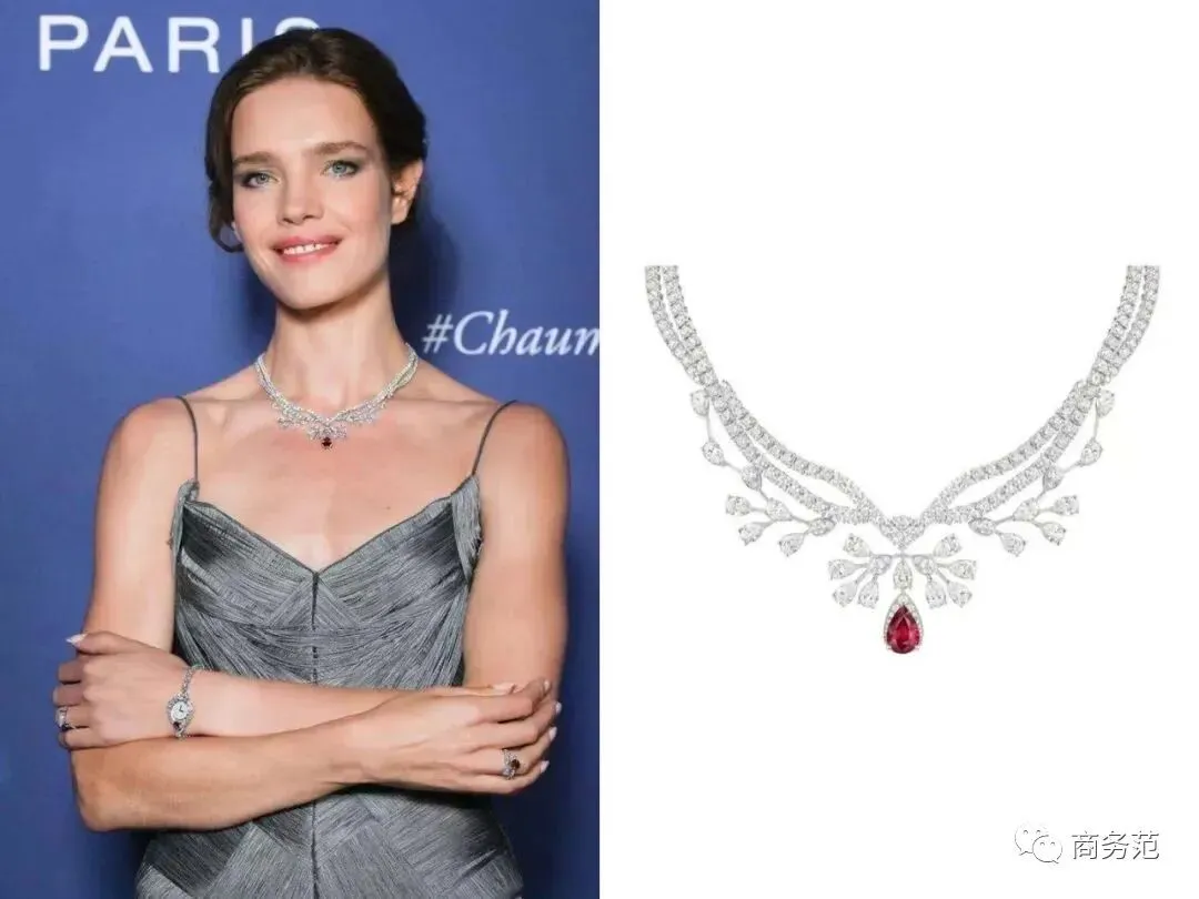 她自己也佩戴过不少尚美的高珠,之前出席活动就戴了这款Joséphine Aigrette Impériale白金项链。