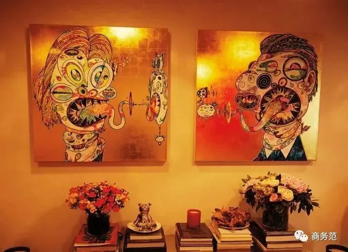 艺术画作在家中随处可见,比如走廊上还就挂着村上隆的版画。