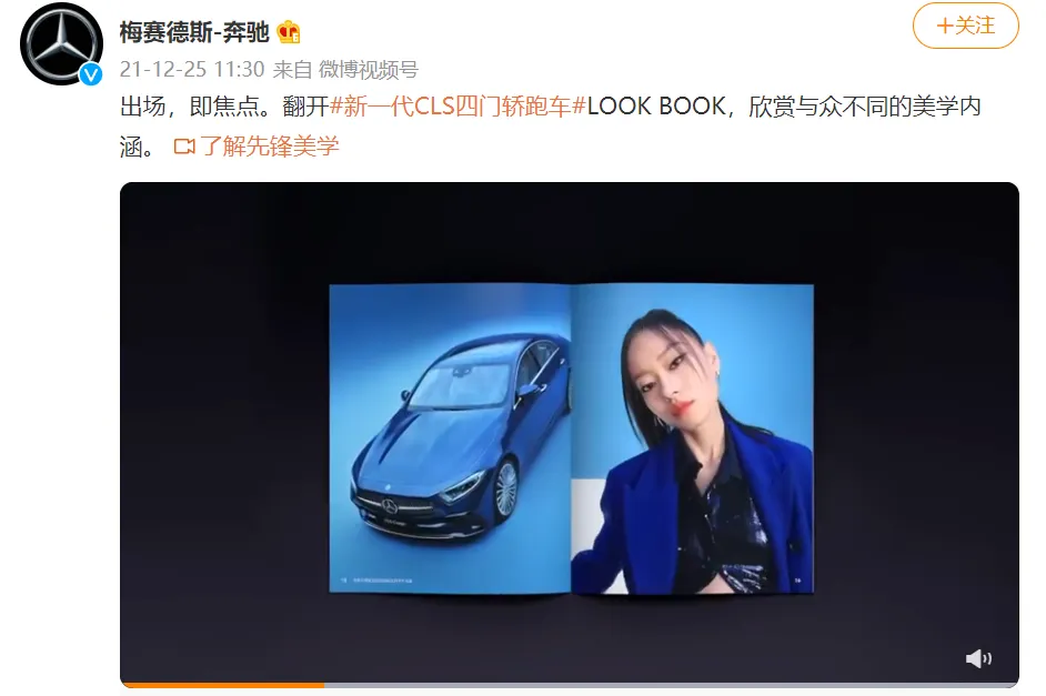 事实上,梅赛德斯-奔驰这条视频广告12月25日就已发表在其微博官方账号上,视频时长50秒,在视频中,奔驰为宣传新车而采用了一男一女两位模特搭档。