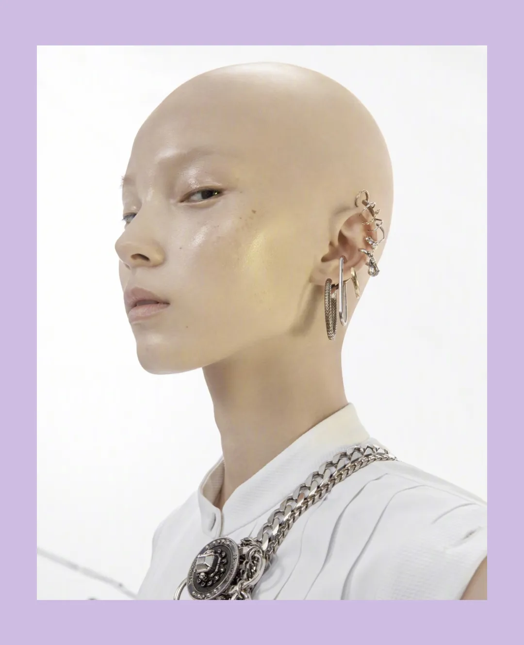 又可以hold住光头,扮成AI仿生人,诠释科技感与先锋感;