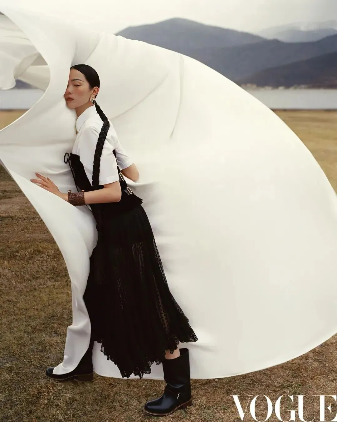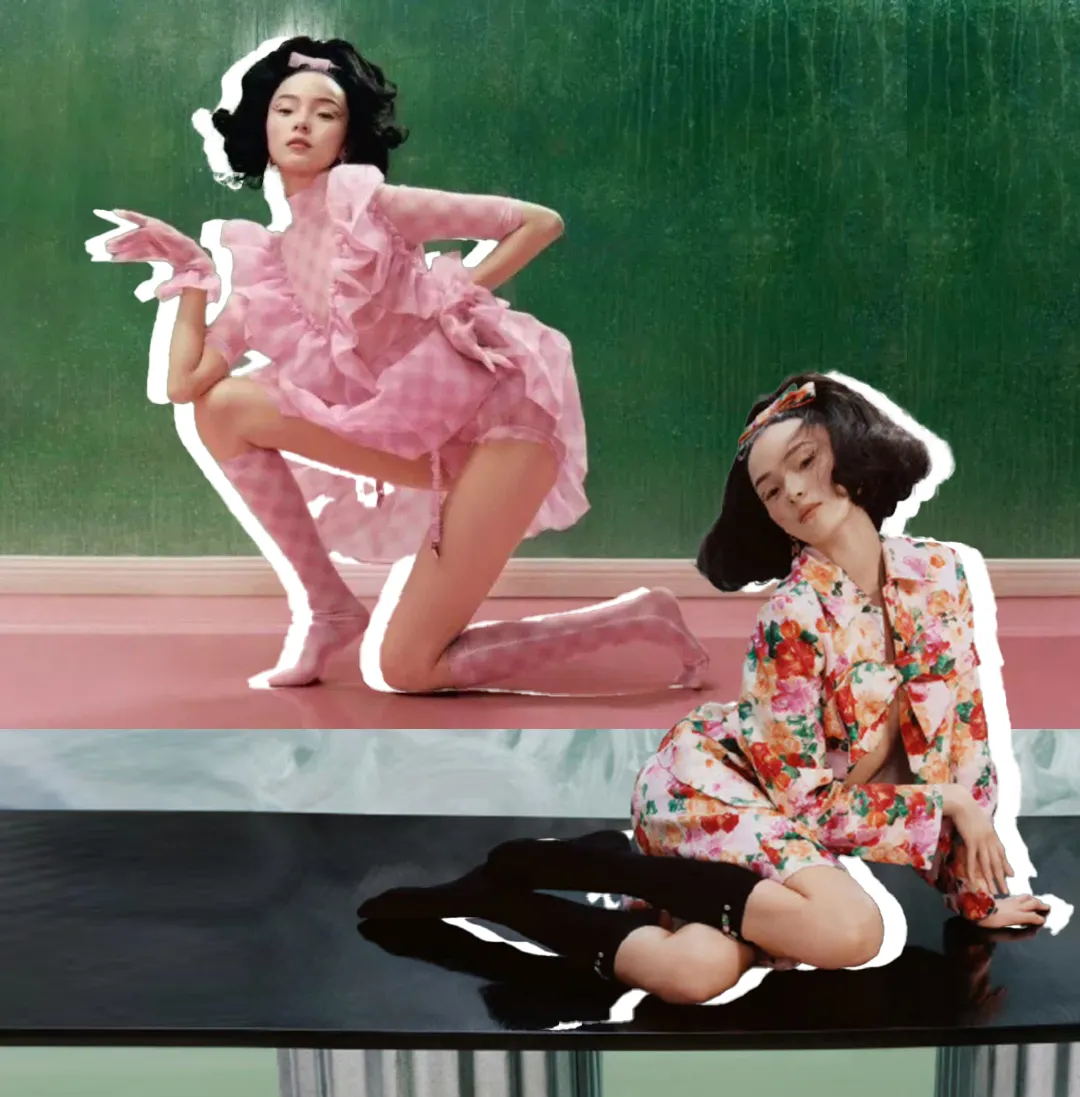 细长的丹凤眼,宽眼距,巴掌大的娃娃脸,这些特质尽管与主流审美有出入,却使她的面部犹如中国画一般充满着留白与可塑性。