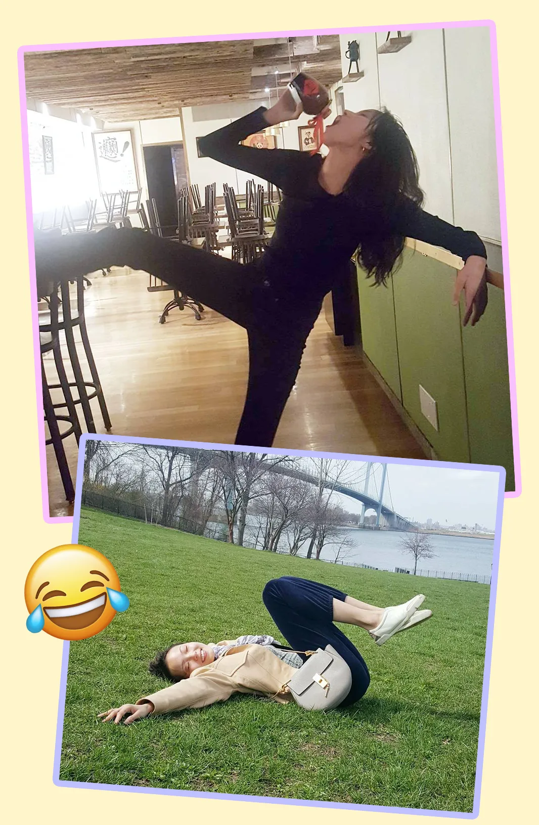 拍摄一结束,她就会开始搞怪,像个听到下课铃的疯丫头。